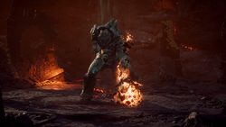 Ash titans are large, bipedal creatures found within the world.
